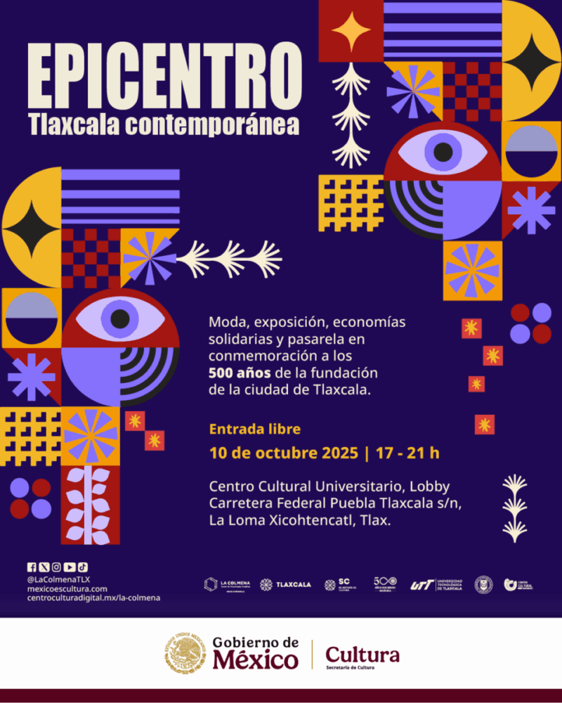 La Secretaría de Cultura del Gobierno de México, a través de La Colmena: Centro de Tecnologías Creativas Grace Quintanilla, convoca a “Epicentro: Tlaxcala Contemporáneo 2025”, una muestra donde arte, moda y tecnología convergen para celebrar los 500 años de la fundación de la capital de Tlaxcala.