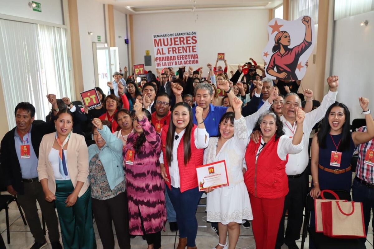 El Partido del Trabajo (PT) Tlaxcala realizó la capacitación “Mujeres al Frente. Paridad efectiva: de la Ley a la Acción”, un espacio de formación dirigido a militantes, simpatizantes y ciudadanía en general, con el fin de impulsar la participación política de las mujeres y consolidar la paridad de género en la vida pública.