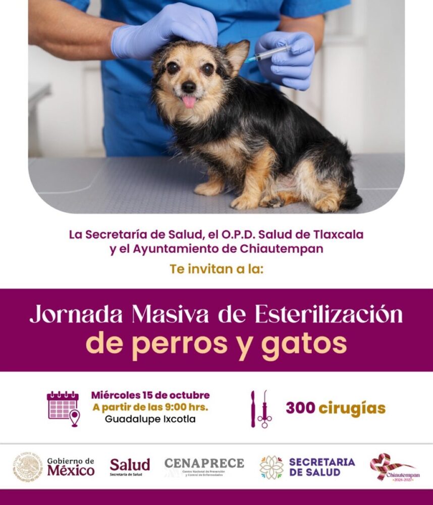 Chiautempan será sede de la Jornada Nacional de Esterilización para Perros y Gatos, evento que forma parte del 4º Taller Nacional de Esterilización Quirúrgica organizado por la Secretaría de Salud del Gobierno de México y el O.P.D. Salud de Tlaxcala, en coordinación con el Ayuntamiento de Chiautempan.
