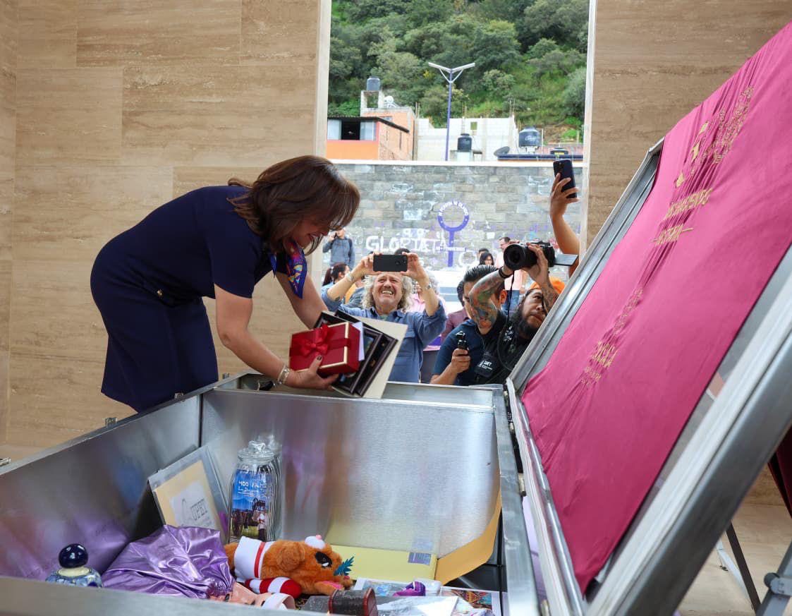 Junto a su carta personal, la gobernadora depositó una figura emblemática: el “Hombre Pájaro”, inspirada en los murales sagrados de Cacaxtla, que representa la libertad, la sabiduría y la fuerza espiritual del pueblo tlaxcalteca. “Esta figura encarna el espíritu de Tlaxcala: un pueblo que vuela alto sin olvidar sus raíces”, subrayó.