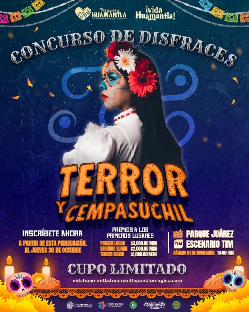 La Dirección de Bienestar, a través de la Coordinación de Juventud del Ayuntamiento de Huamantla, invita a todas y todos los jóvenes a participar en el concurso “Terror y Cempasúchil”, una actividad que forma parte del festival Vida Huamantla, con el objetivo de promover la creatividad y el amor por nuestras tradiciones del Día de Muertos.