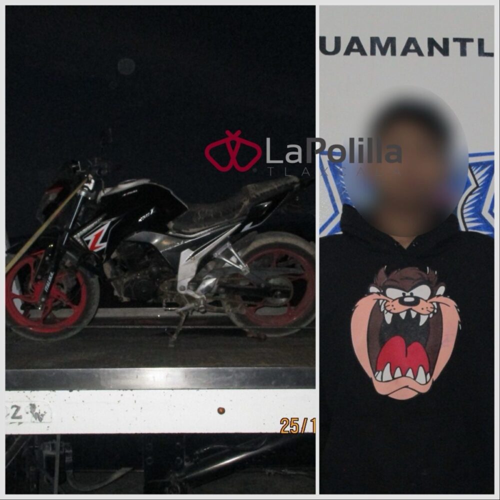 Elementos de la Dirección de Seguridad Pública, Tránsito y Protección Civil de Huamantla aseguraron una motocicleta con reporte de robo y detuvieron a su conductor en el Barrio de Santa Anita, como parte de los operativos permanentes de vigilancia y prevención del delito en el municipio.