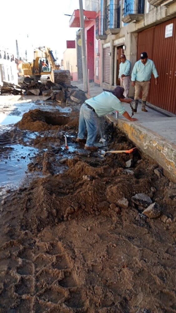 Además, se llevó a cabo la revisión del sistema de drenaje en calle Abasolo, donde actualmente se desarrollan obras de reestructuración vial que buscan mejorar la funcionalidad y eficiencia del servicio hidráulico.