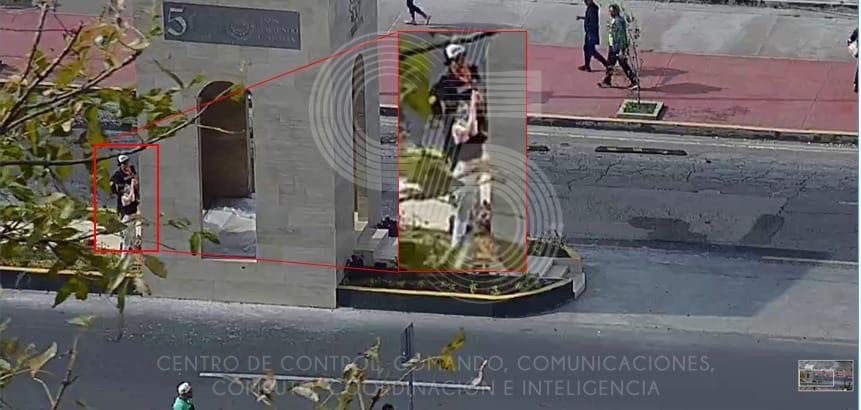 De acuerdo con el monitoreo, las cámaras de videovigilancia captaron a cinco jóvenes con vestimenta oscura realizando pintas y colocando cartulinas con mensajes. Posteriormente, se refugiaron durante unos minutos en la Plaza Inn, frente al antiguo Asta Bandera, antes de huir en distintas direcciones.