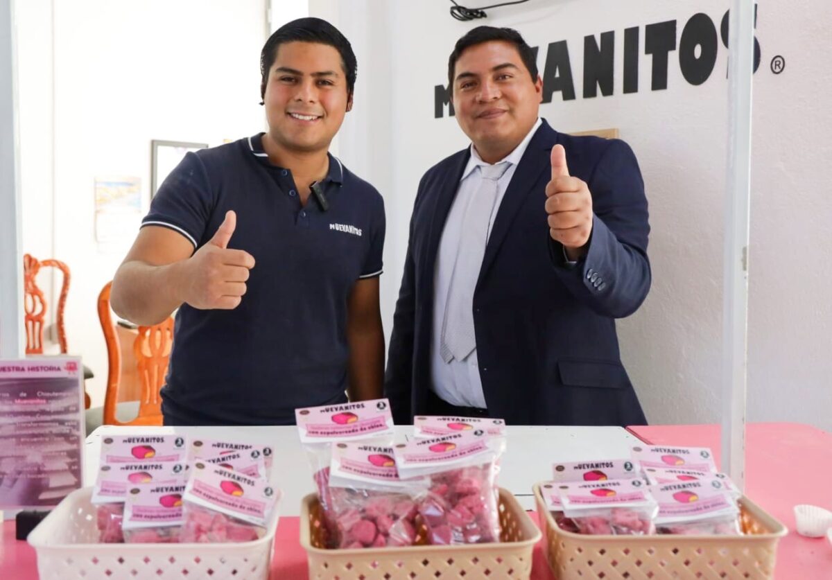 La presidenta municipal de Chiautempan, Blanca Angulo Meneses, sostuvo un encuentro con el joven emprendedor chiautempense durante una visita al taller de su empresa “Muevanitos”, un proyecto que nació a partir de los tradicionales muéganos del municipio y que, gracias a la innovación, ha logrado posicionarse dentro del ámbito emprendedor.