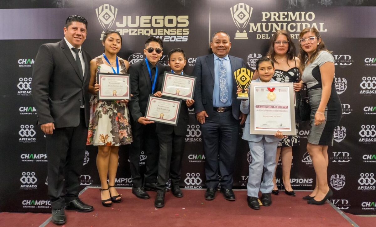 Durante el evento se otorgaron reconocimientos correspondientes al Premio Municipal del Deporte en las categorías Infantil, Deporte Aficionado, Alto Rendimiento, Categoría Equipo y Entrenador. En cuanto a los Juegos Apizaquenses 2025, fueron premiados los equipos ganadores en basquetbol, voleibol, futbol rápido y acuatlón.