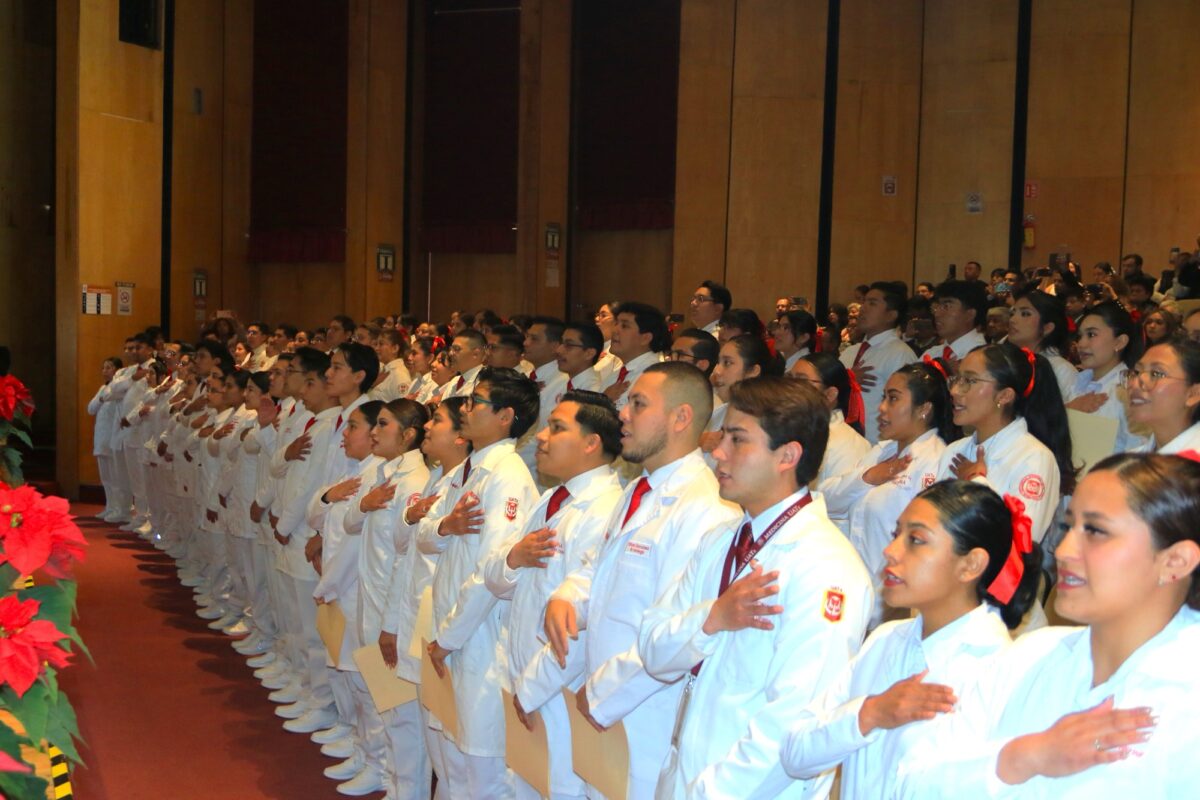 Un total de 87 egresados de la Licenciatura en Médico Cirujano de la Universidad Autónoma de Tlaxcala (UATx) concluyeron su formación profesional y rindieron juramento ético durante su ceremonia de graduación, realizada en el Teatro Universitario.