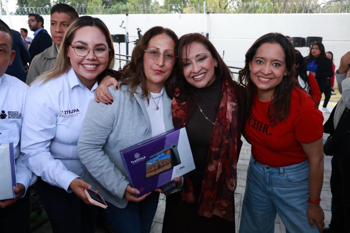 La gobernadora Lorena Cuéllar Cisneros encabezó la entrega de 100 tabletas electrónicas a asesores educativos voluntarios del Instituto Tlaxcalteca para la Educación de Jóvenes y Personas Adultas (ITEJPA), como parte de una estrategia para fortalecer la alfabetización y la educación básica mediante herramientas tecnológicas.