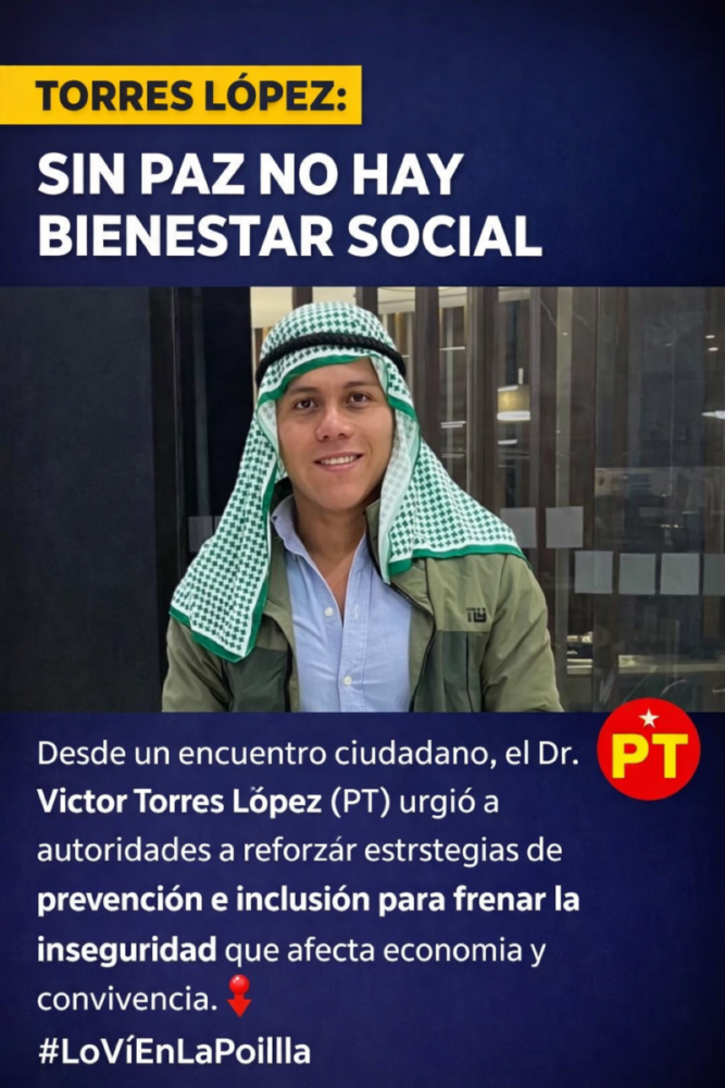 El Dr. Víctor Torres López, abogado y militante del Partido del Trabajo (PT) en Colima, llamó a que la seguridad de las familias sea el eje central de las políticas públicas en 2026, al advertir que sin paz ni orden social no puede haber desarrollo ni bienestar real.