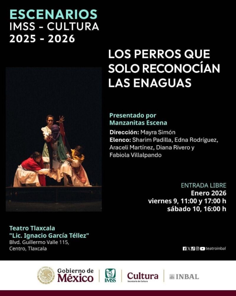 La presentación forma parte del programa Escenarios IMSS–Cultura 2025–2026. Las funciones se realizarán en el Teatro Tlaxcala “Lic. Ignacio García Téllez”, en el centro de la capital, con entrada libre, el viernes 9 de enero de 2026 a las 11:00 y 17:00 horas, y el sábado 10 de enero a las 16:00 horas.