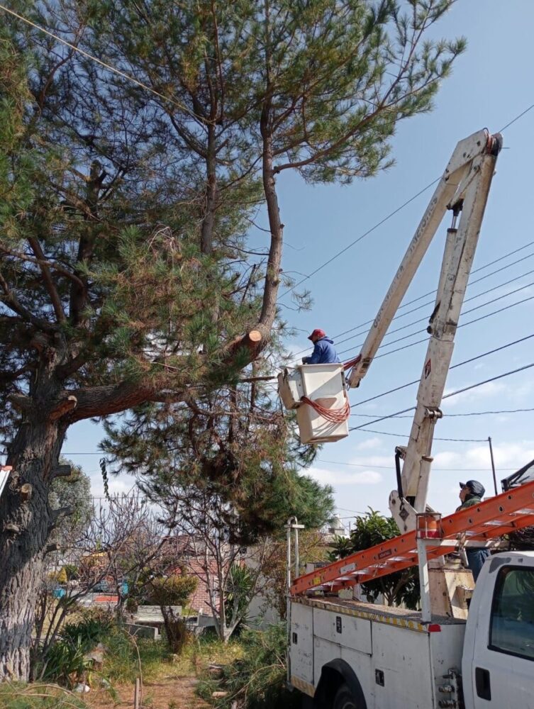 Como parte de estas acciones, este día se efectuaron trabajos de poda y descoronamiento de árboles en el fraccionamiento Ignacio Zaragoza, con el fin de prevenir riesgos y conservar en buen estado las áreas verdes. De igual manera, se llevaron a cabo tareas de limpieza en los panteones del municipio y en el bulevar Cuamanco, contribuyendo a mantener espacios ordenados y seguros.