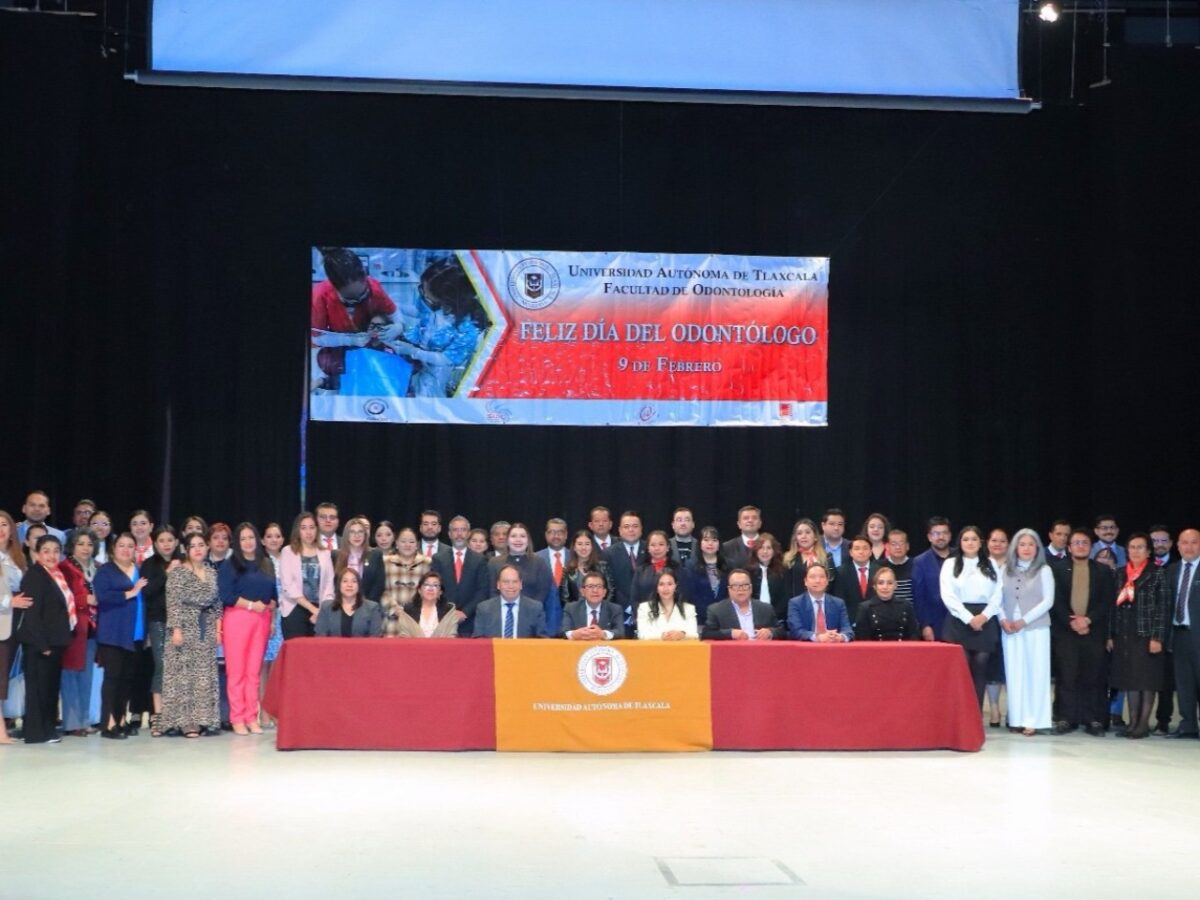 Ante la comunidad estudiantil de la Licenciatura en Cirujano Dentista, de la Especialidad en Endodoncia y de la Maestría en Estomatología Integral del Niño y el Adolescente, así como docentes y estructura directiva de la Facultad reunidos en el Centro Cultural Universitario, el Rector recordó que la Facultad de Odontología, junto con las facultades de Ciencias de la Educación y de Ciencias Económico Administrativas, dio origen hace 50 años a la fundación de la UATx.
