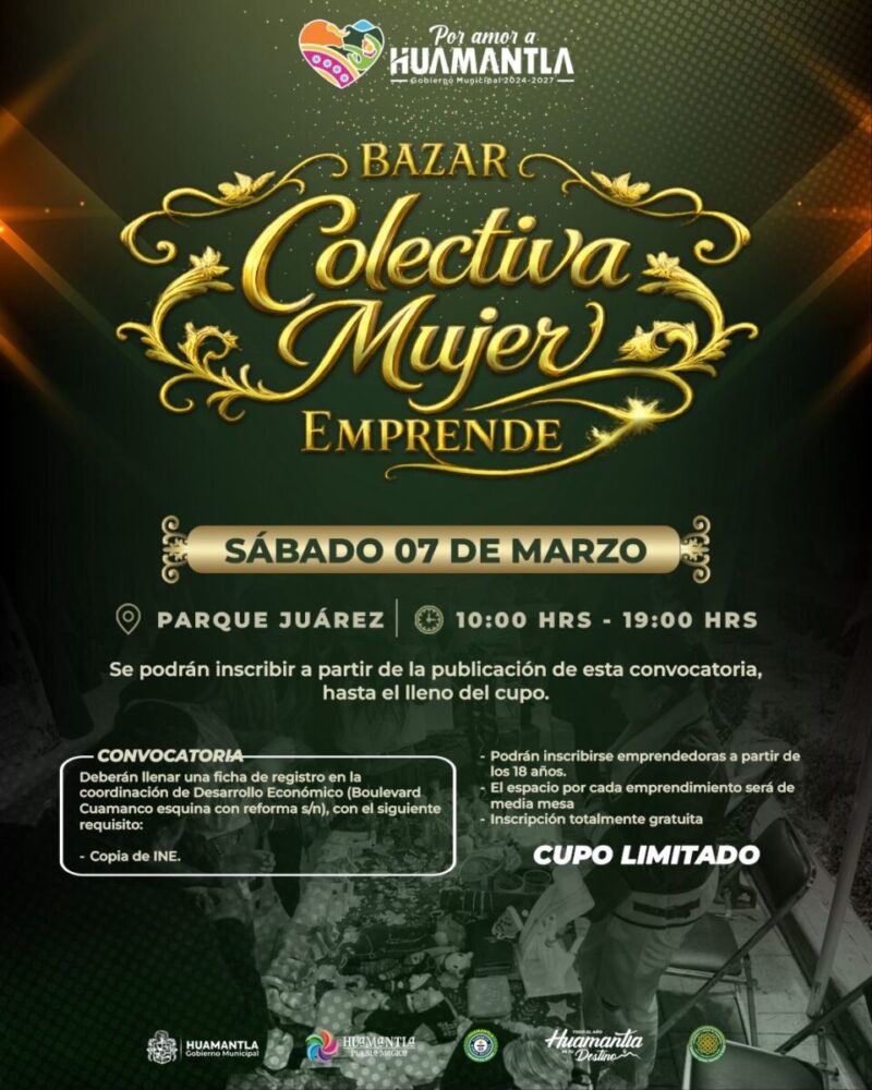 Con esta iniciativa, el Gobierno Municipal de Huamantla busca crear un espacio de encuentro para las emprendedoras locales, promover sus productos y servicios, así como incentivar la economía del municipio a través del apoyo al talento femenino.