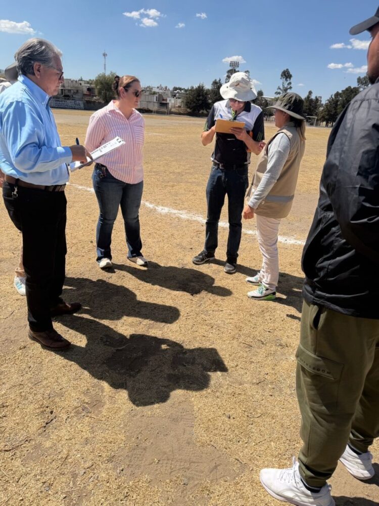 La visita fue encabezada por la directora de Bienestar, Montserrat Vargas Farías, quien acompañó al equipo técnico de la SEDATU en el recorrido por la unidad deportiva.