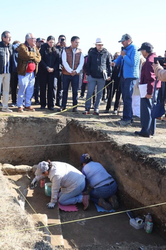 En su intervención, el presidente municipal Hugo Mendoza Salazar solicitó el apoyo del Gobierno del Estado y del INAH para continuar las investigaciones, ampliar las excavaciones y garantizar la protección integral del sitio.